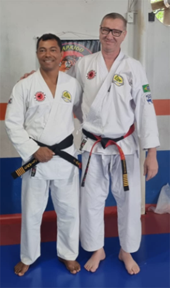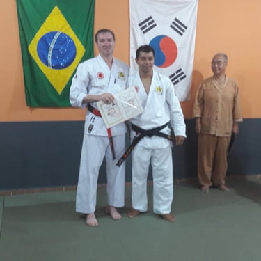 “Fui até o ginásio de esportes de minha cidade pra assistir a uma aula e logo me identifiquei com a modalidade, comecei a treinar em 1989 com os professores Edson e Hélio de Oliveira, me formei faixa preta em 1999 em Morungaba/SP. Me mudei para Jundiaí/SP em 2001, passei a treinar então com Ms Marco Satriano (Brasil Korea Hapkido Contato), me graduei 2º Dan em 2006, 3º Dan em 2009, ainda no mesmo ano passei a ter aulas com Ms Donizetti Moraes em Itu- Academia Fábrica (Federação Paulista de Sin Moo Hapkido), onde treinei até 2015, ano que passei a treinar com Ms Anderson (HBCN), me graduando 4º Dan em 2017 e posteriormente 5º Dan em 2022. No período de 2009 a 2023, tive a oportunidade de participar de diversas aulas e seminários com Grão-Mestre PARK SUNG JAE. ”